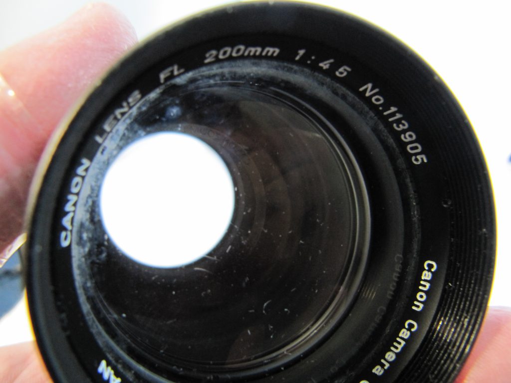 ブックオフで見つけた Canon FL 200mm F4.5 のジャンク品です。ビニールに完全にくるまれていて、レンズに内部の状態もヘリコイドや絞りリングの動きも全く確認できません。ただ金属製の純正のフロントキャップとリヤキャップが付いていて、280円ならば良しと思い、買ってきました。果たして使い物になるのでしょうか?