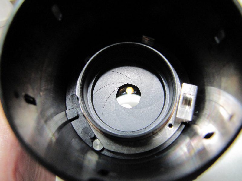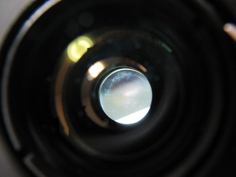 絞り羽の向こう側のレンズが汚れていました。幸い絞り側の面だけの汚れだったのですぐにきれいになりました。