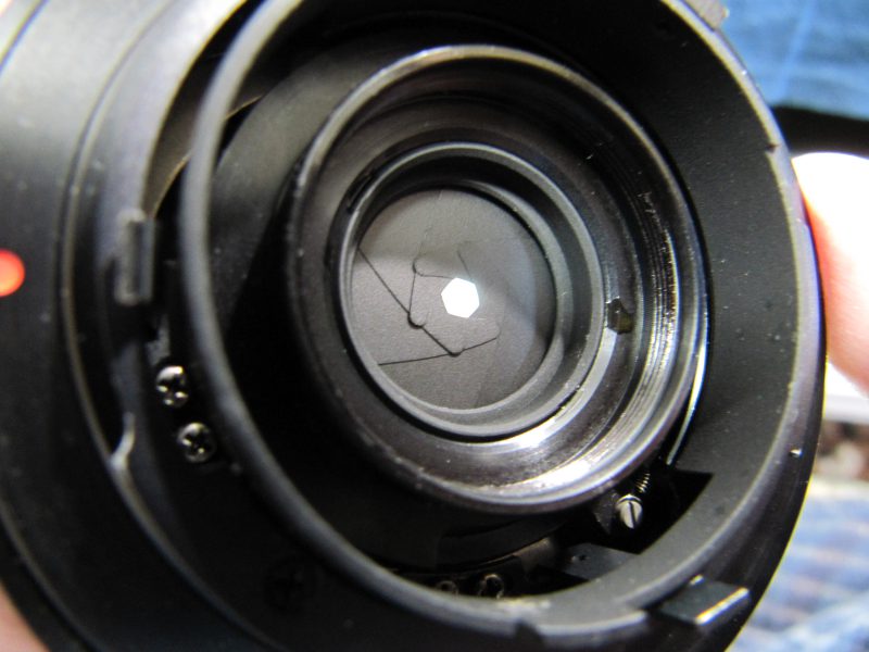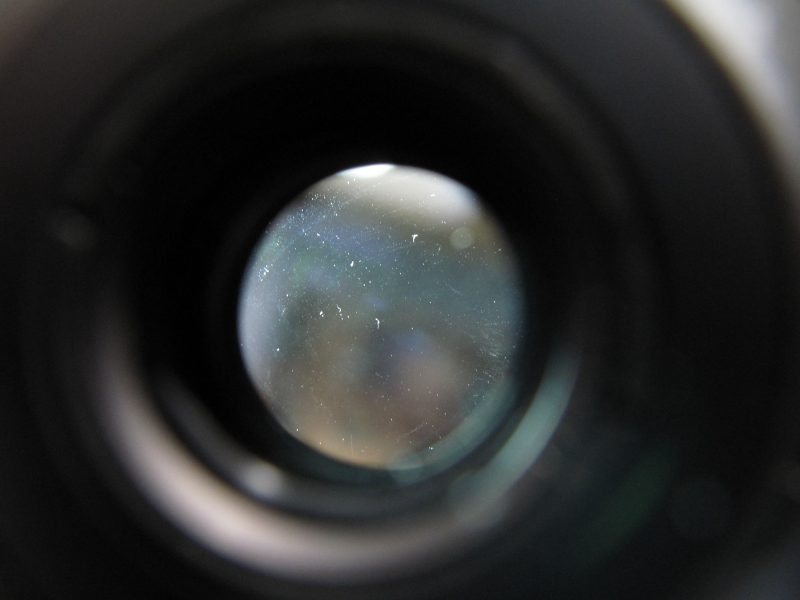 絞り羽は奇麗です。絞り羽の前後のレンズ面だけが汚れているみたいです。無水エタノールで、きれいにします。簡単に汚れは取れました。