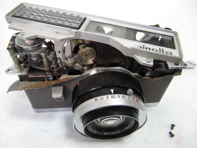 MinoltaのHi-Maticの初代のジャンク品です。NGで324円でした。レンズはきれいなので、取り出してデジタル一眼で利用できれば・・・と思い買ってきました。