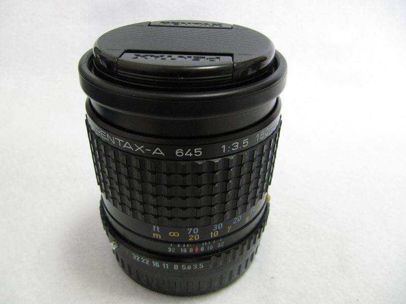 PENNTAX-A 645 用の150mmF3.5のジャンク品です。前後キャップ付きで500円+税でした。ヘリコイドの動きも、絞りの状態も問題ありませんが、前玉群のカビがすごいです。
