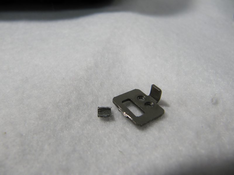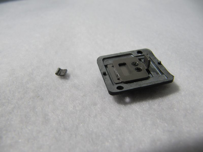 スイッチの下側の爪だけを折り取ります。結構硬いですが、ペンチで何とか折れました。
