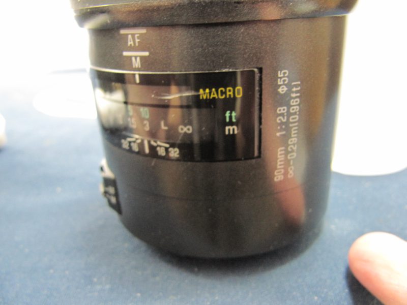 外見は、距離表示のプラスチックにきずがある以外は比較的きれいです。オートフォーカスも無事作動しました。若干迷っている感じもしますが、マクロレンズなので「こんなもん」だと思います。